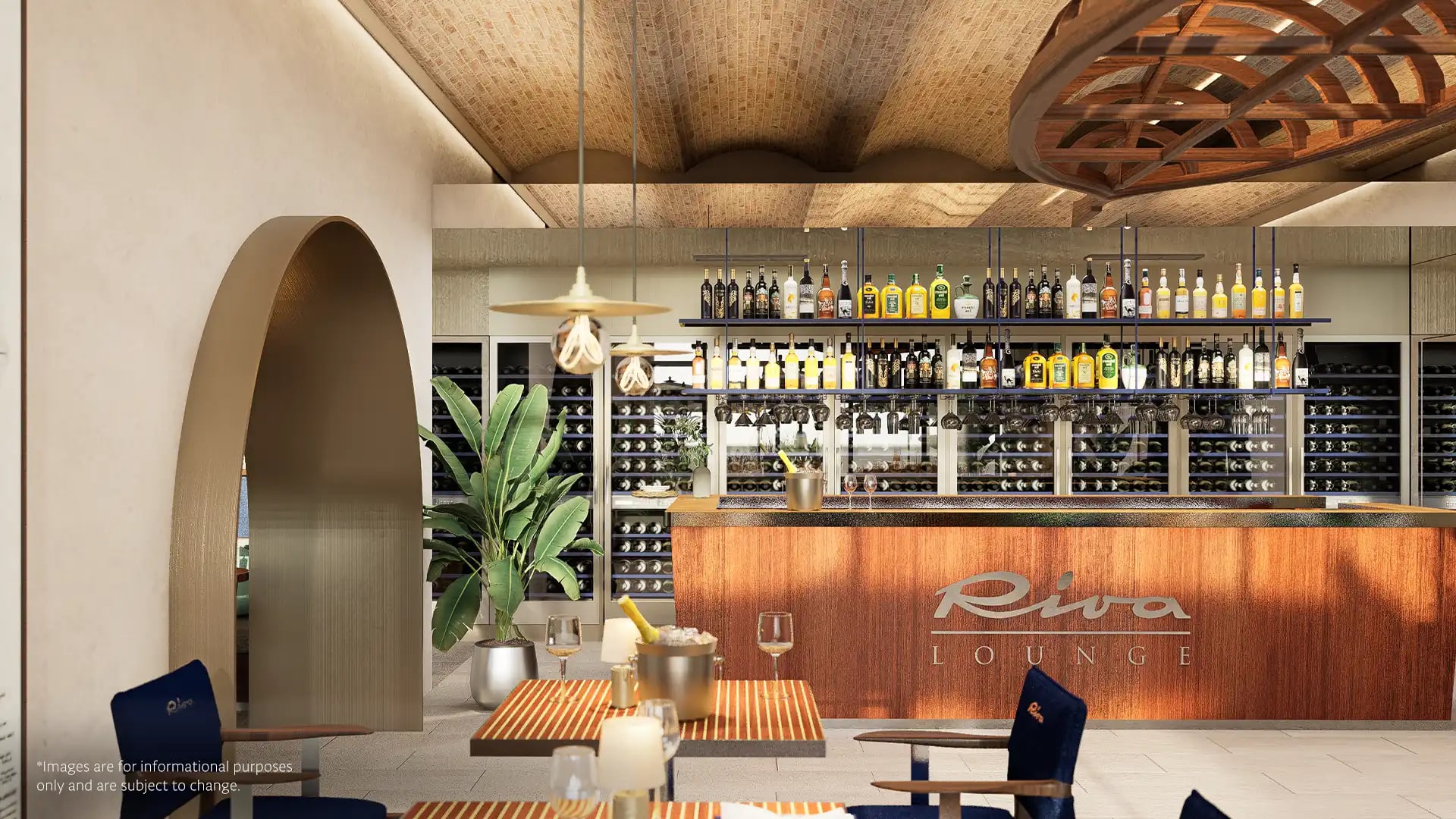U okviru Riva Destinations koncepta, hotel predstavlja koncepte Riva Lounge i Riva Privée – prostore osmišljene kao reinterpretaciju prepoznatljive estetike Riva brodova. Riva Lounge restoran nalazi se na najnižoj razini hotela te prostor objedinjuje svijetli unutarnji dio i panoramsku terasu okrenutu prema moru, dok Riva Privée nudi intimniji ambijent namijenjen privatnim okupljanjima i posebnim prigodama. Dizajn interijera inspiriran je stilom pedesetih godina prošlog stoljeća i estetikom Dolce Vita, s karakterističnim materijalima i detaljima poput mahagonija, rebrastog javora, poliranog čelika, kroma i akvamarin tonova. Prostor je oplemenjen autentičnim dizajnerskim elementima poput Aquariva lampi i stolica inspiriranih modelom Aquarama, kao i arhivskim fotografijama koje evociraju nasljeđe i mitologiju brenda Riva. Koncept se temelji na suptilnoj eleganciji i vrhunskoj izradi, bez naglašene ekstravagancije, u skladu s identitetom hotela Monte Mulini.